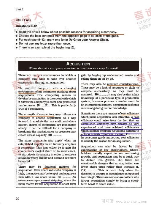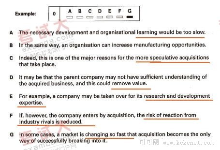 第八段的原因“expectations of key shareholders”。选择GAP 12 的句子需要联系上下文,前后讲的都是收购有风险,可能会使股价下跌。所以GAP 12应该填入一个负面的,即选项D的“remove value”。