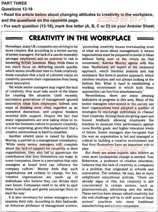17 According to the survey, which of the following strategies has been introduced to encourage creativity?