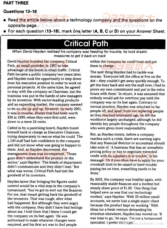 14 Which of the following situations did Hayden face at Critical Path in 2001?