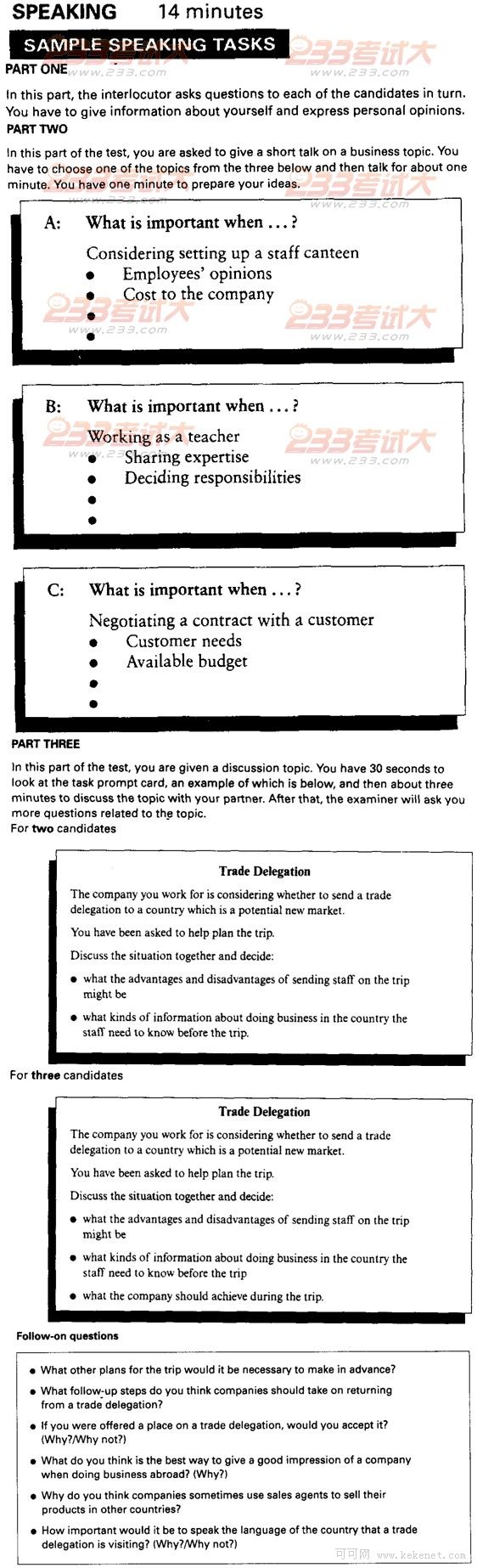 剑桥BEC中级真题集第四辑test 1:口语部分