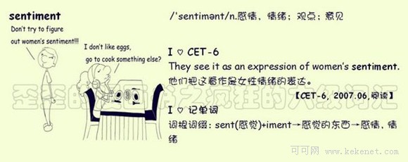 【联想记单词】词根词缀:sent(感觉)+iment→感觉的东西→感情,情绪