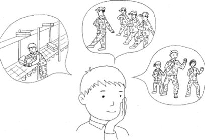 假设你叫李华, 美国友好学校的部分学生来你校访问, 你作为学生代表参加了座谈会。座谈会上,有美国同学请你介绍一下你们参加军训的情况。请你根据回忆(见下图),用英文写出你的即席发言稿。