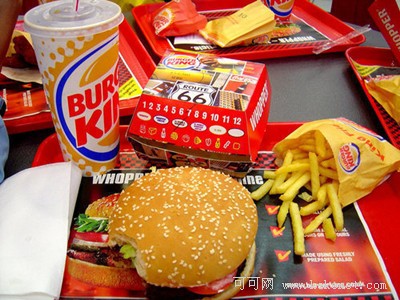 2.美国人吃饭用刀叉,而且他们的用餐方式是很有讲究的。因此,在应邀与美国朋友一起吃饭时,应特别注意他们的用餐习惯。一般情况下,餐桌上摆放有一幅餐刀和两幅餐叉,外边的餐叉供你吃色拉,里边的餐叉用于吃主食和其它点心食品,餐刀用来切肉食。如果你两手并用,应左手握叉,右手握刀,而且一次握刀时间不能太长。美国人的早餐有:炒或煮鸡蛋、香肠、油炸土豆片、薄煎饼、果子冻、烤面包、松饼、桔子汁以及咖啡等。