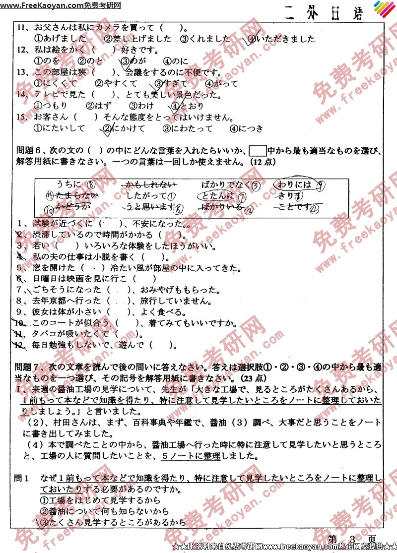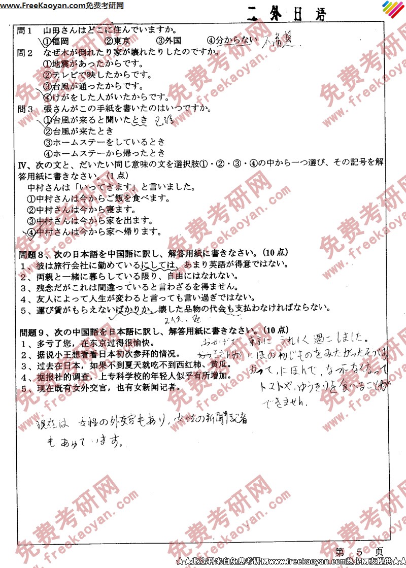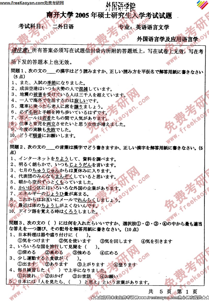 南开大学2005年英语语言文学(二外日语)专业课考研真题试卷