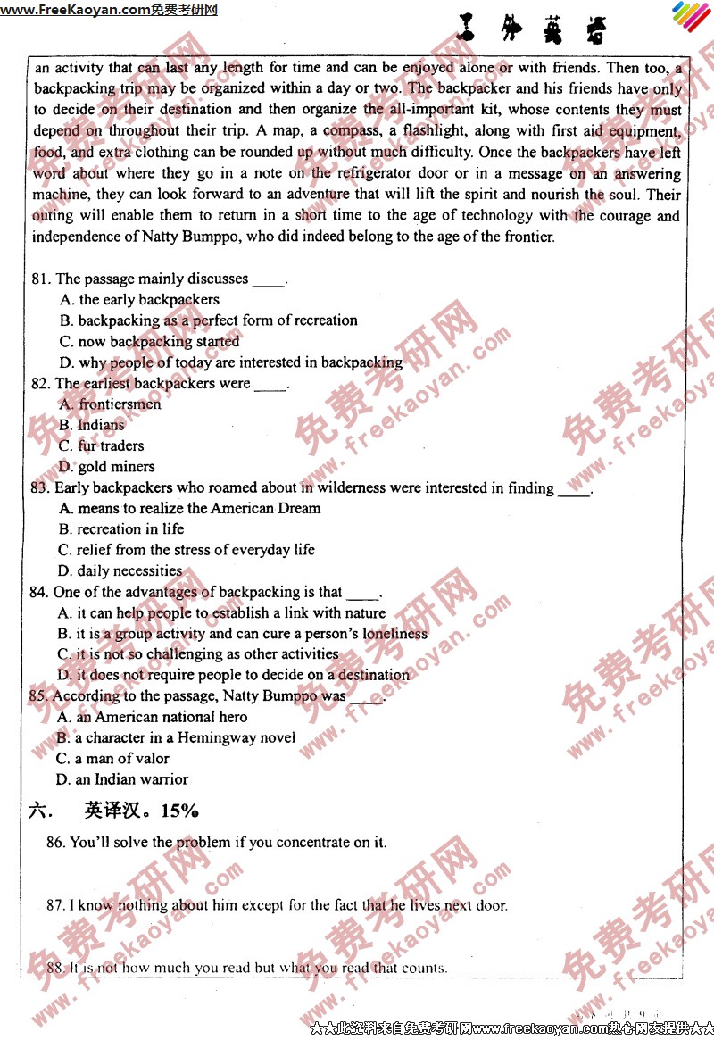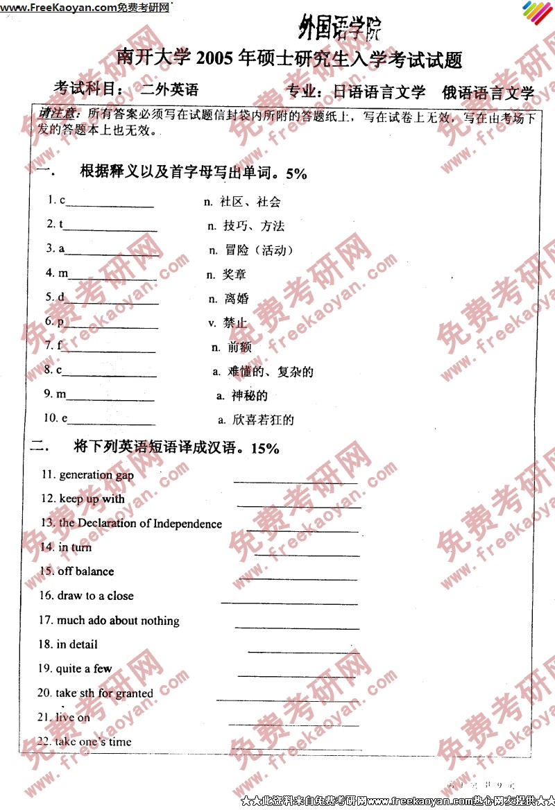 南开大学2005年日语语言文学(二外英语)专业课考研真题试卷