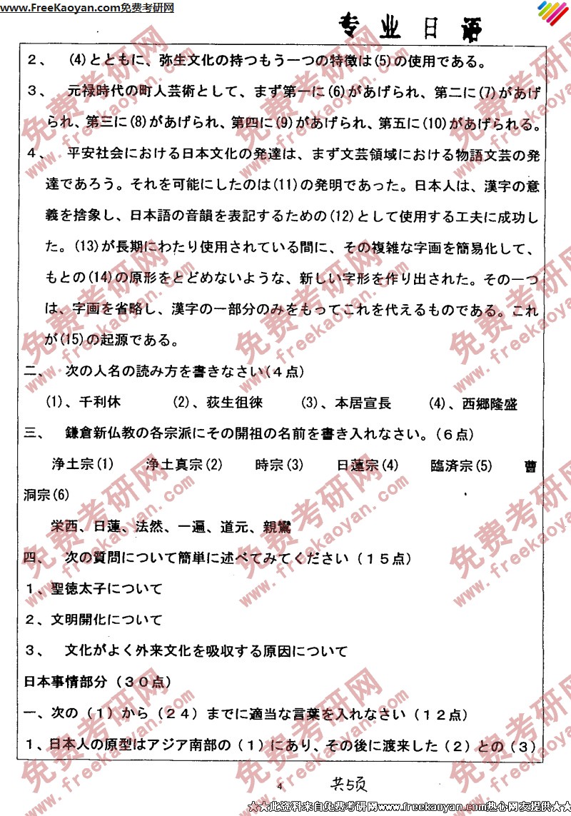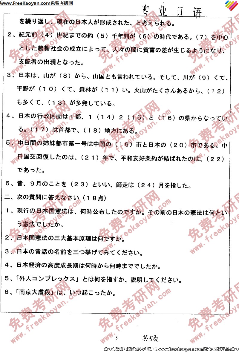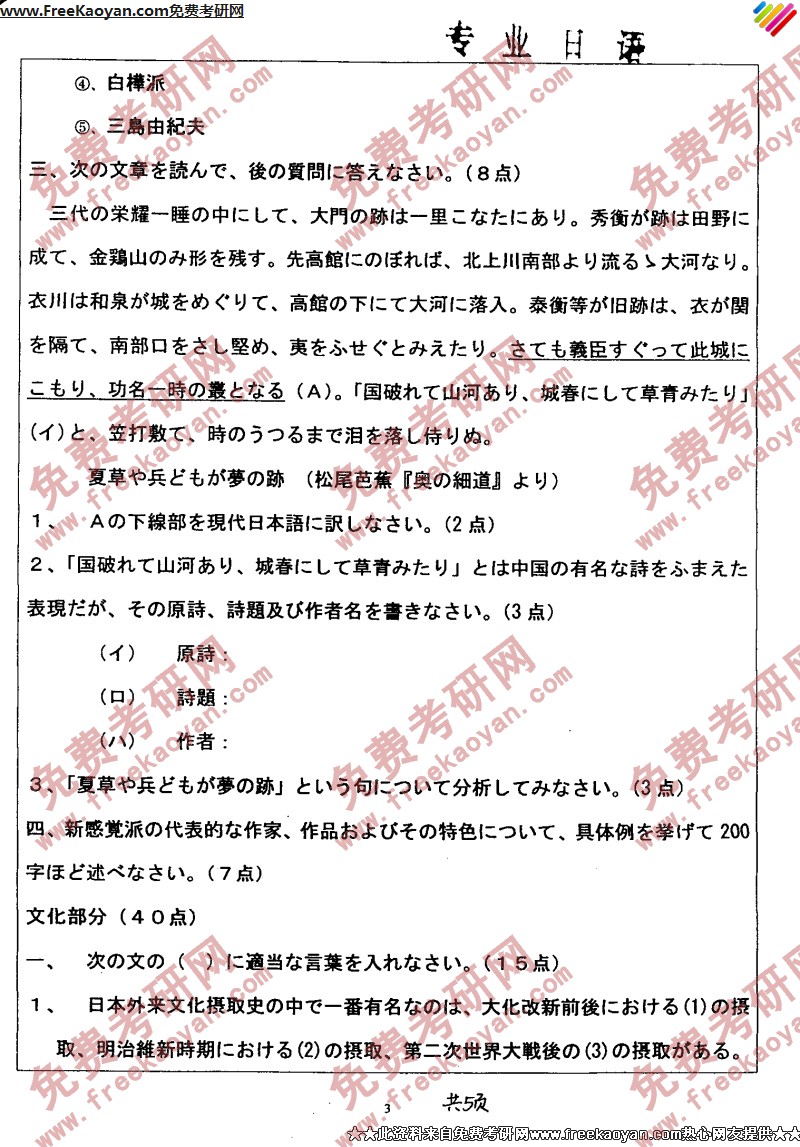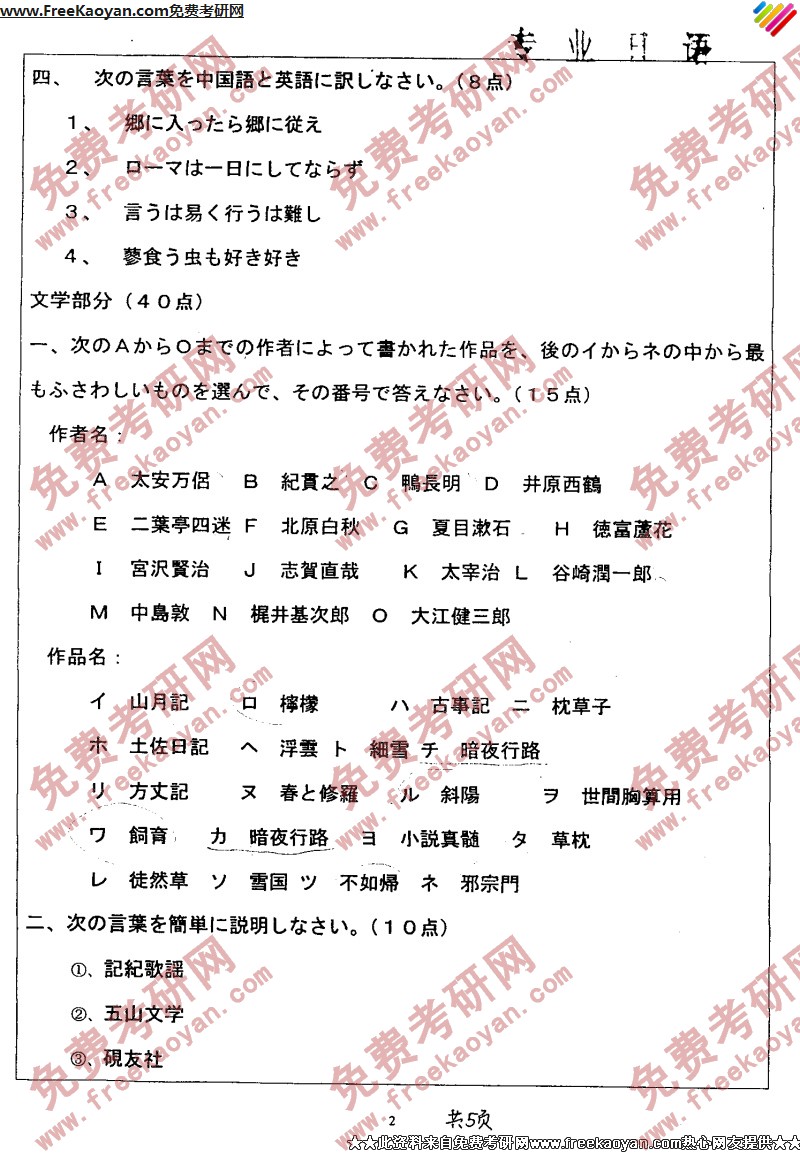 南开大学2005年日语语言文学(专业日语)专业课考研真题试卷