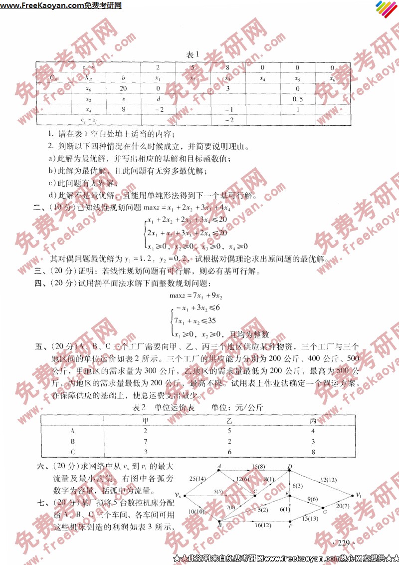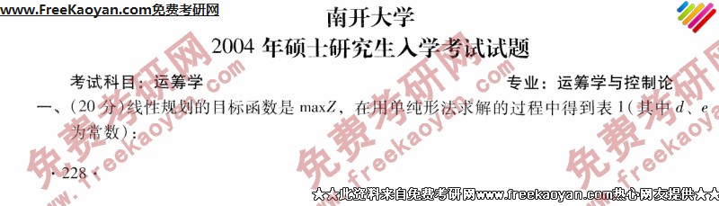 南开大学2004年运筹学与控制论(运筹学)专业课考研真题试卷