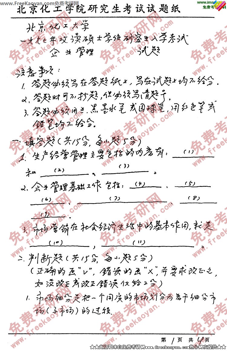 北京化工大学1998年工业企业管理专业课考研真题试卷