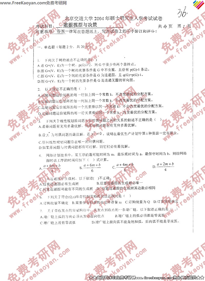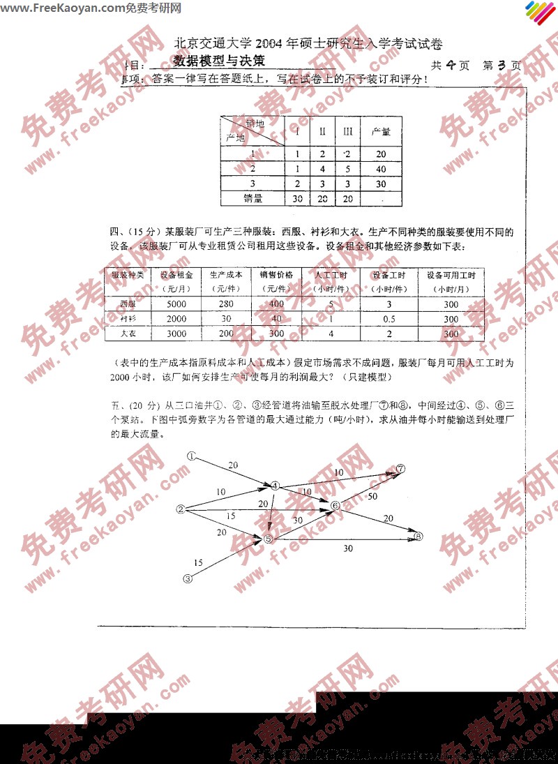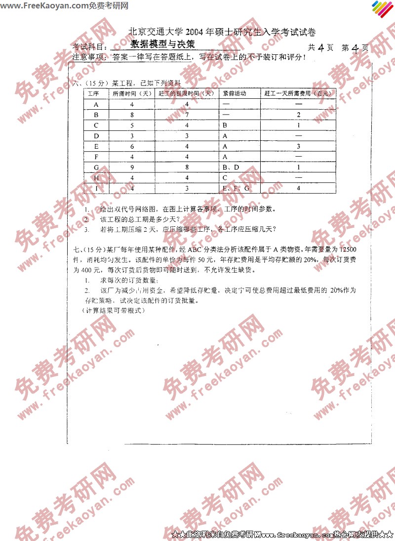 北京交通大学2006年数据模型与决策专业课考研真题试卷