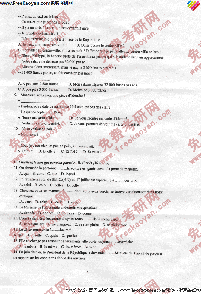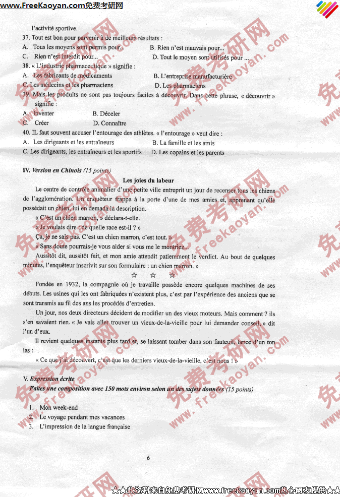 燕山大学2007年法语专业课考研真题试卷