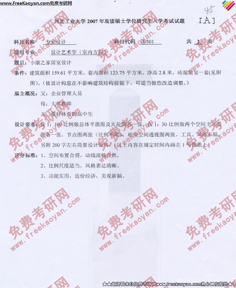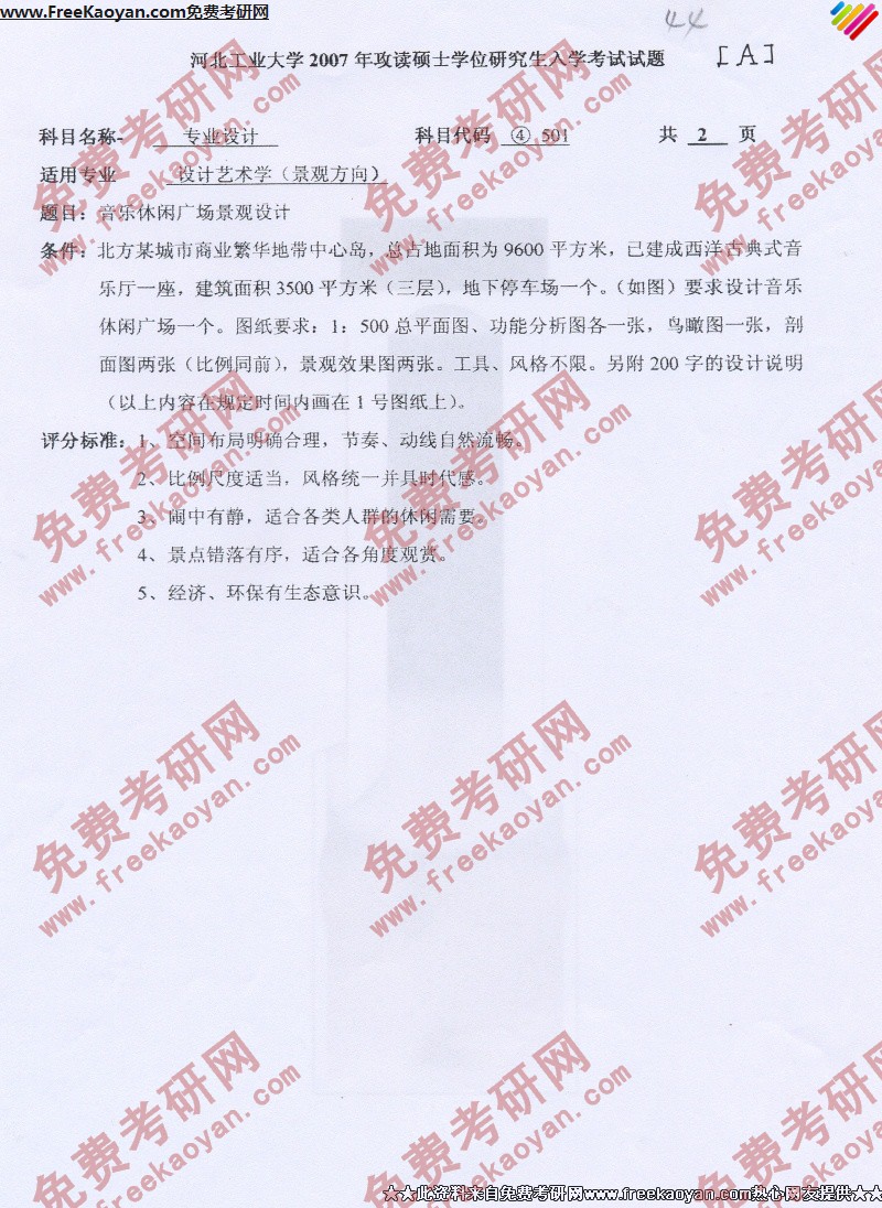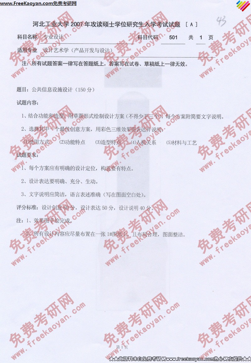 河北工业大学2007年设计艺术学(专业设计)专业课考研真题试卷