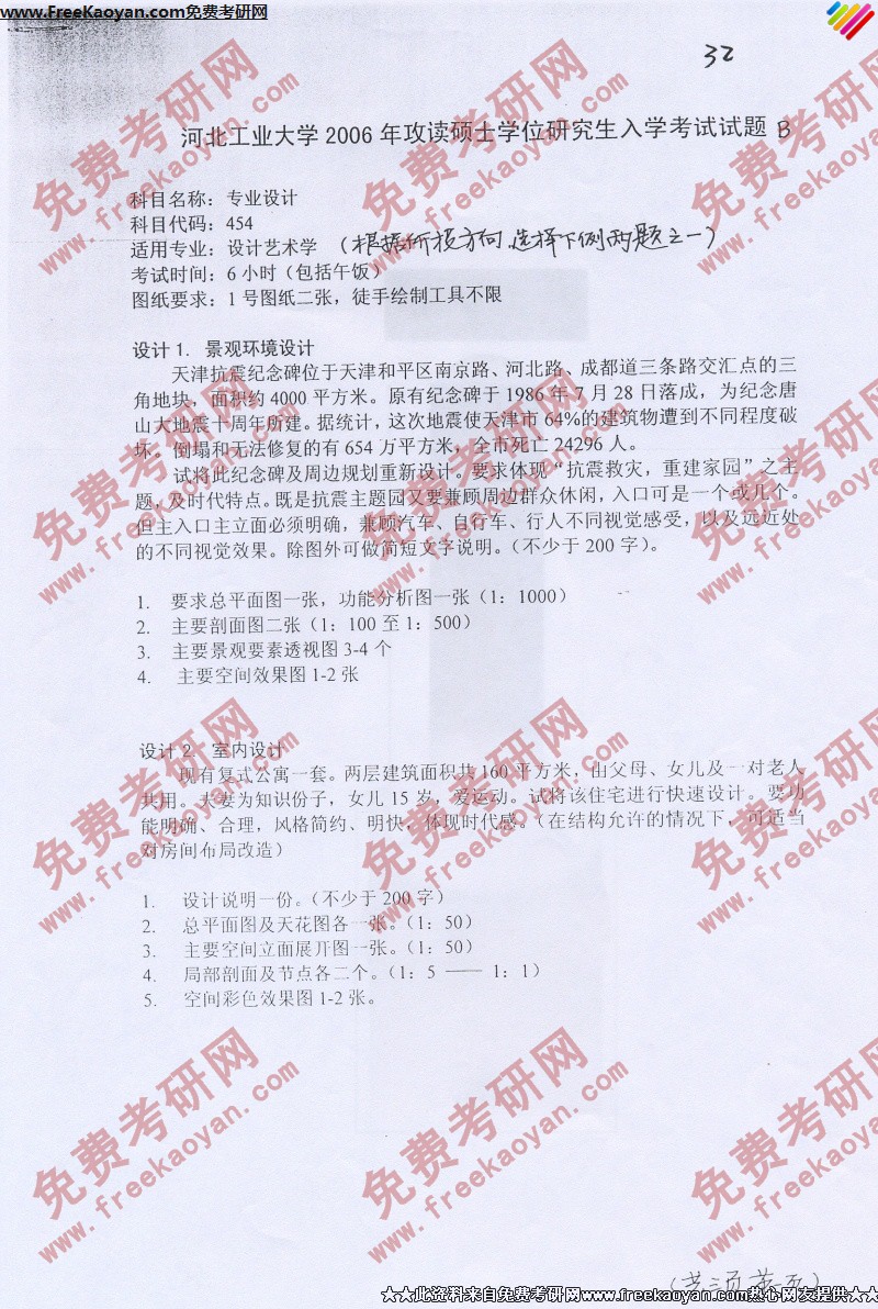 河北工业大学2006年设计艺术学(专业设计)专业课考研真题试卷