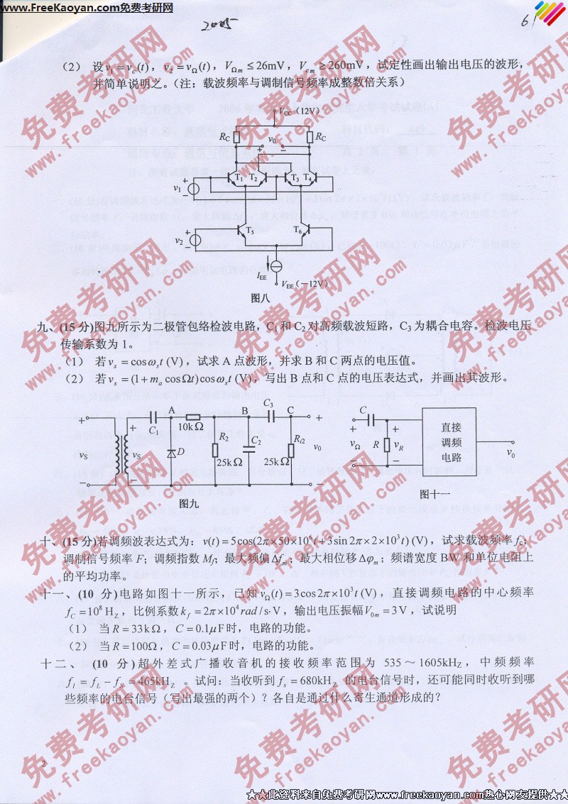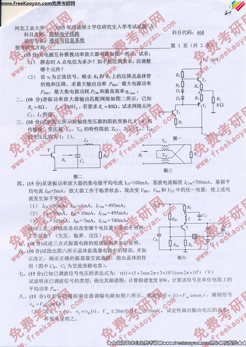 河北工业大学2005年通信与信息系统(高频电子线路)专业课考研真题试卷