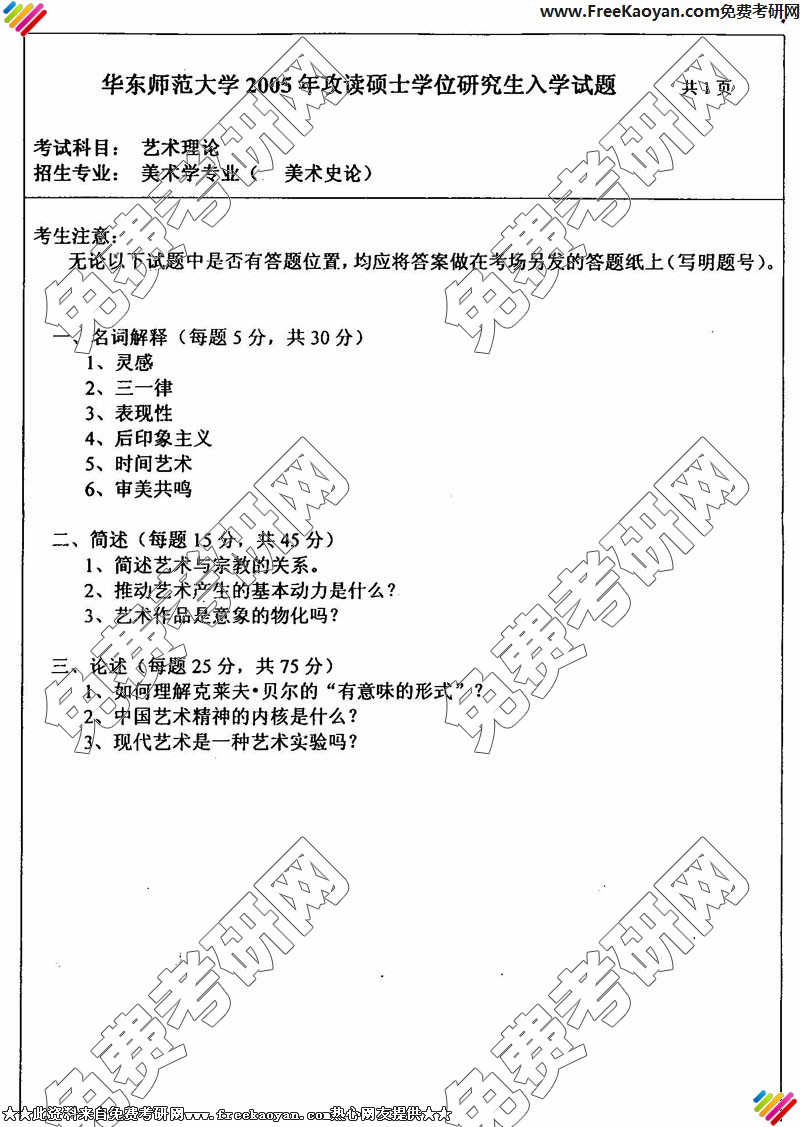 华东师范大学2005年美术史论(艺术理论)专业课考研真题试卷