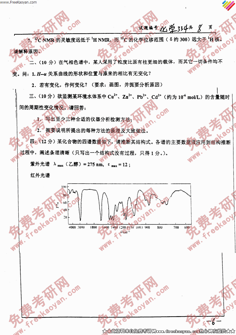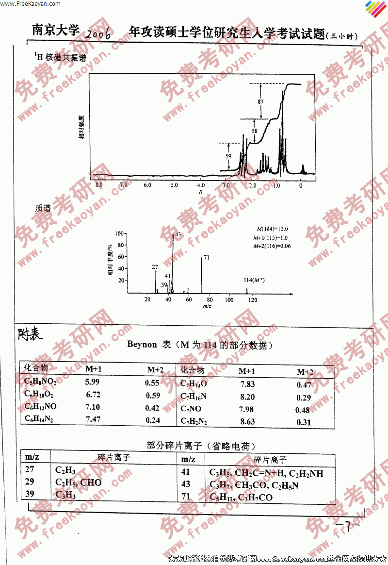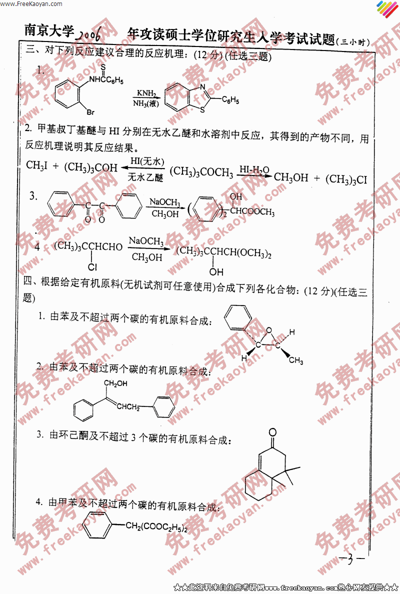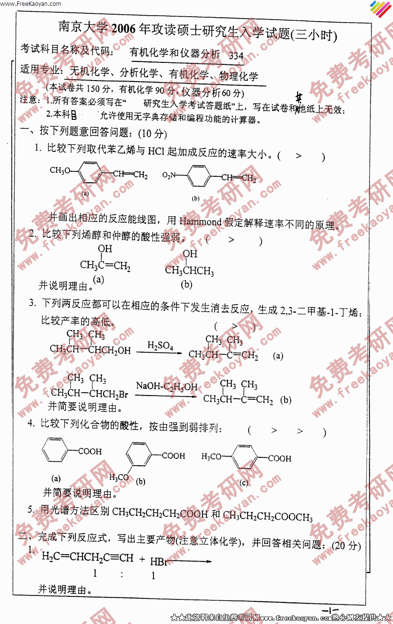 南京大学2006年有机化学和仪器分析专业课考研真题试卷