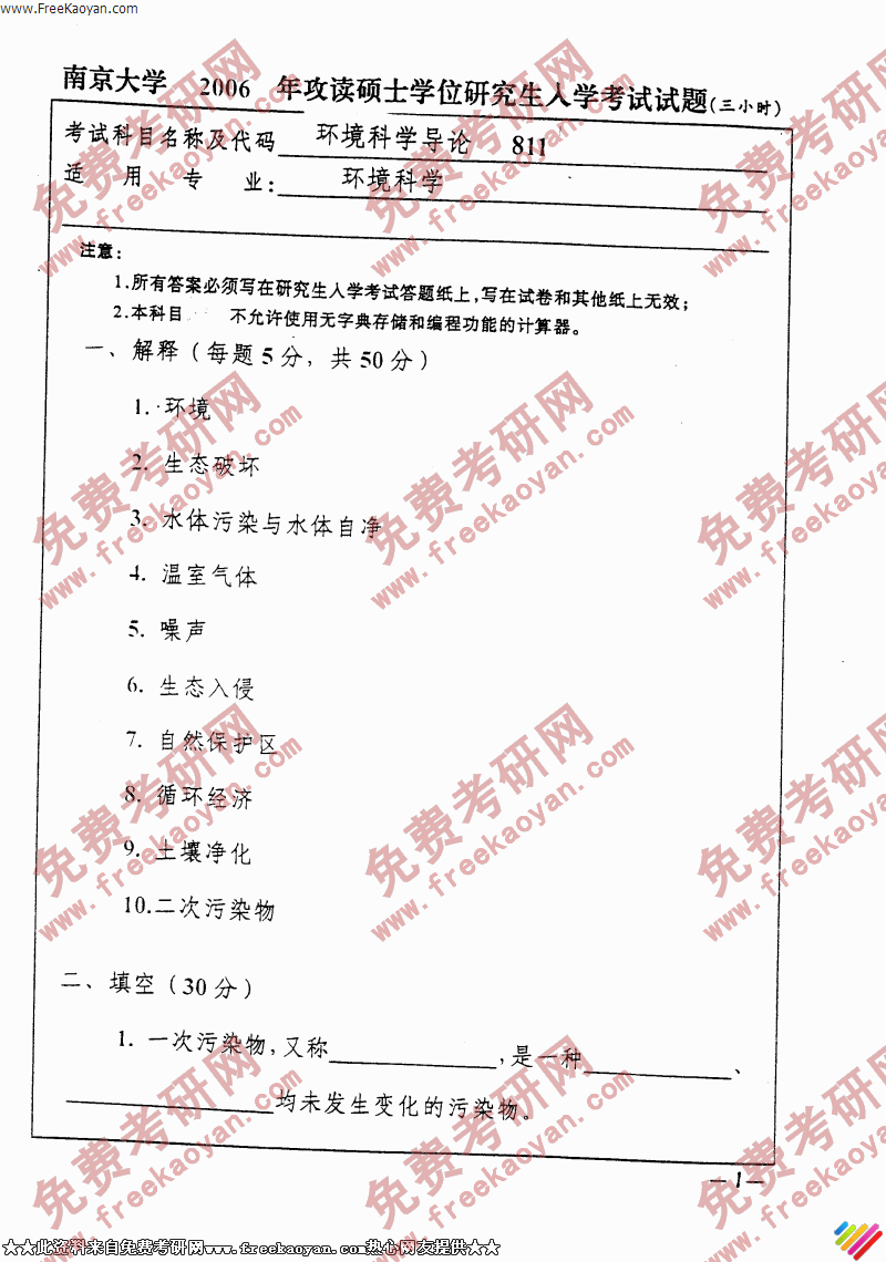 南京大学2006年国际法(专业综合)专业课考研真题试卷