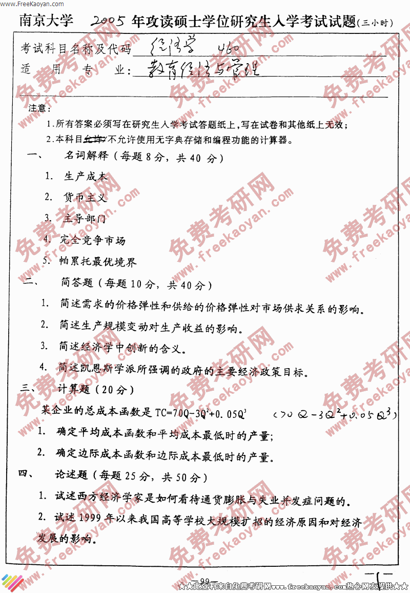 南京大学2005年软件基础(一)专业课考研真题试卷
