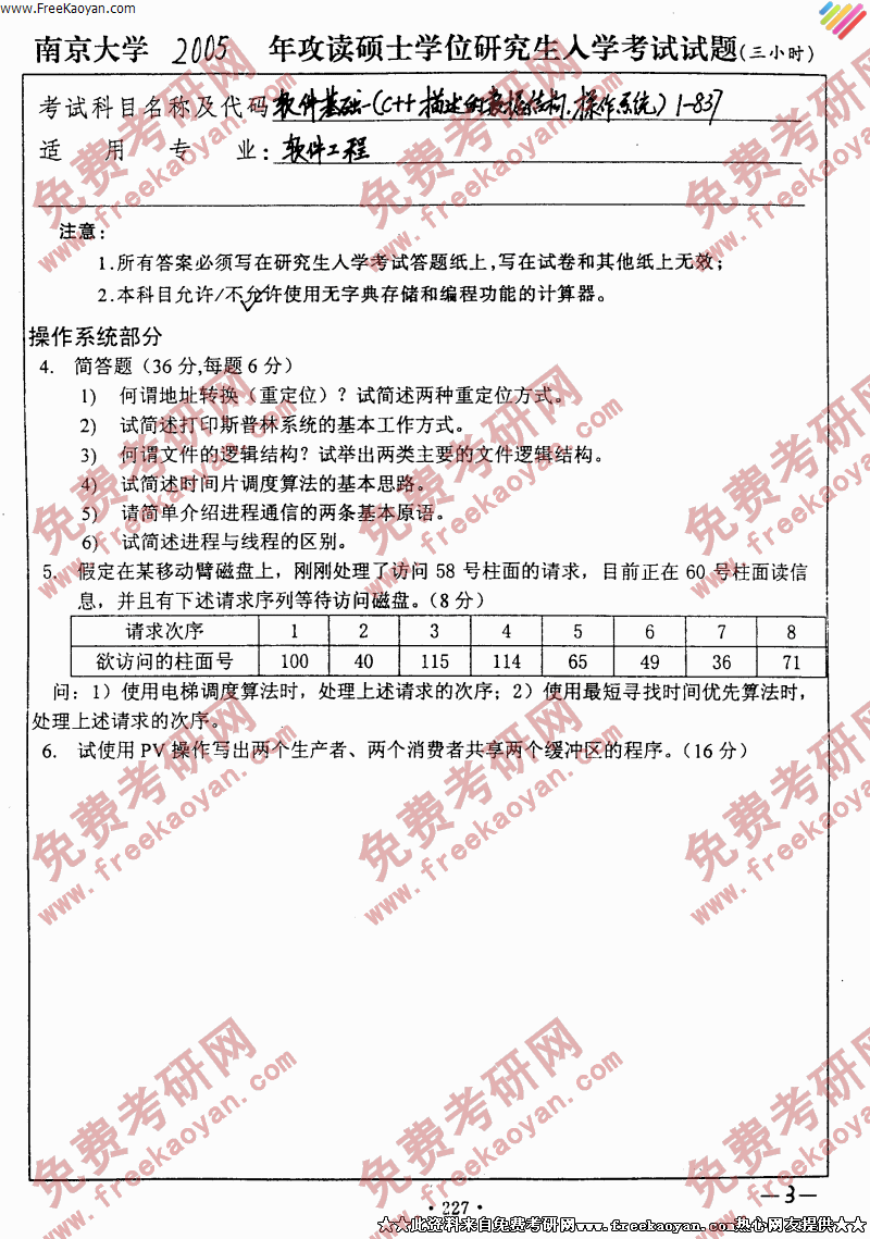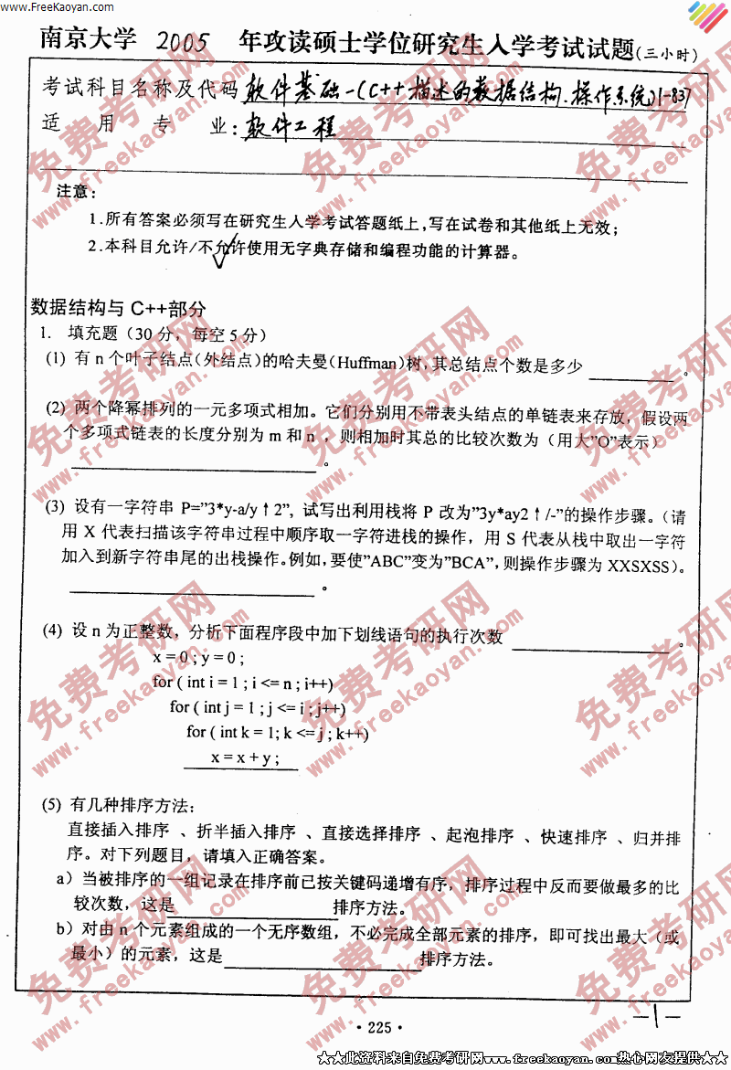 南京大学2005年软件基础(一)专业课考研真题试卷