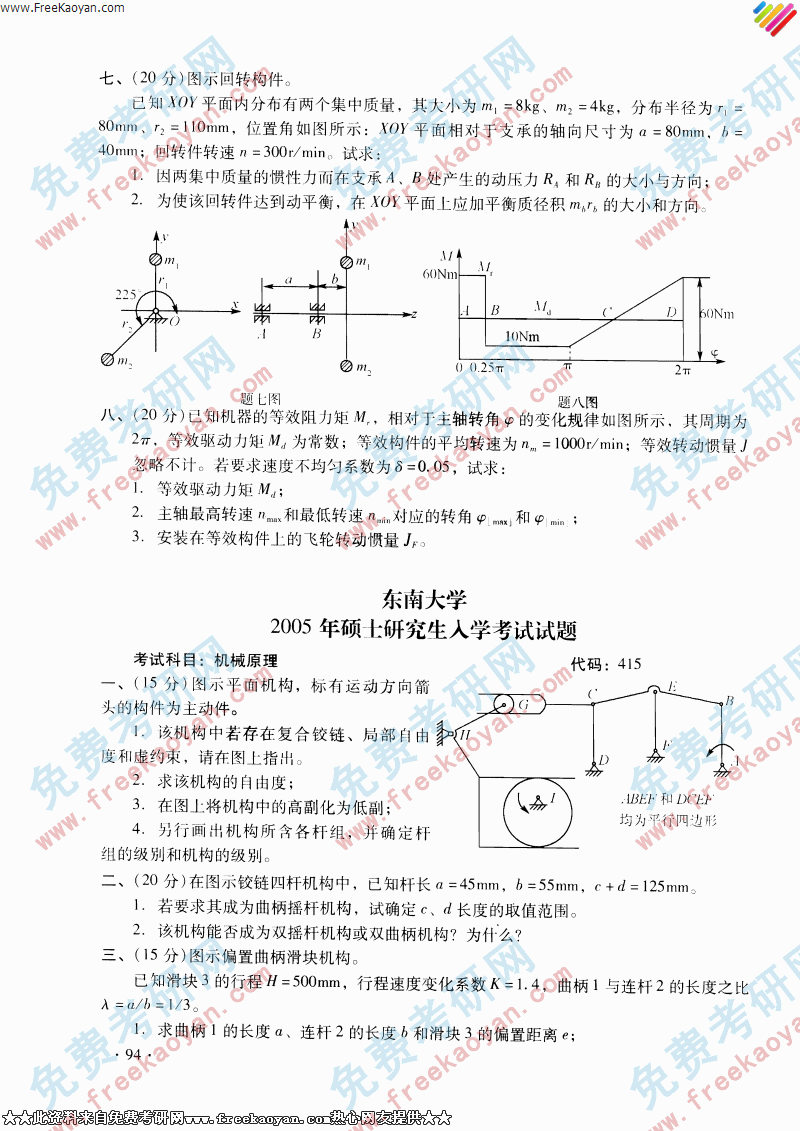 东南大学2005年机械原理专业课考研真题试卷