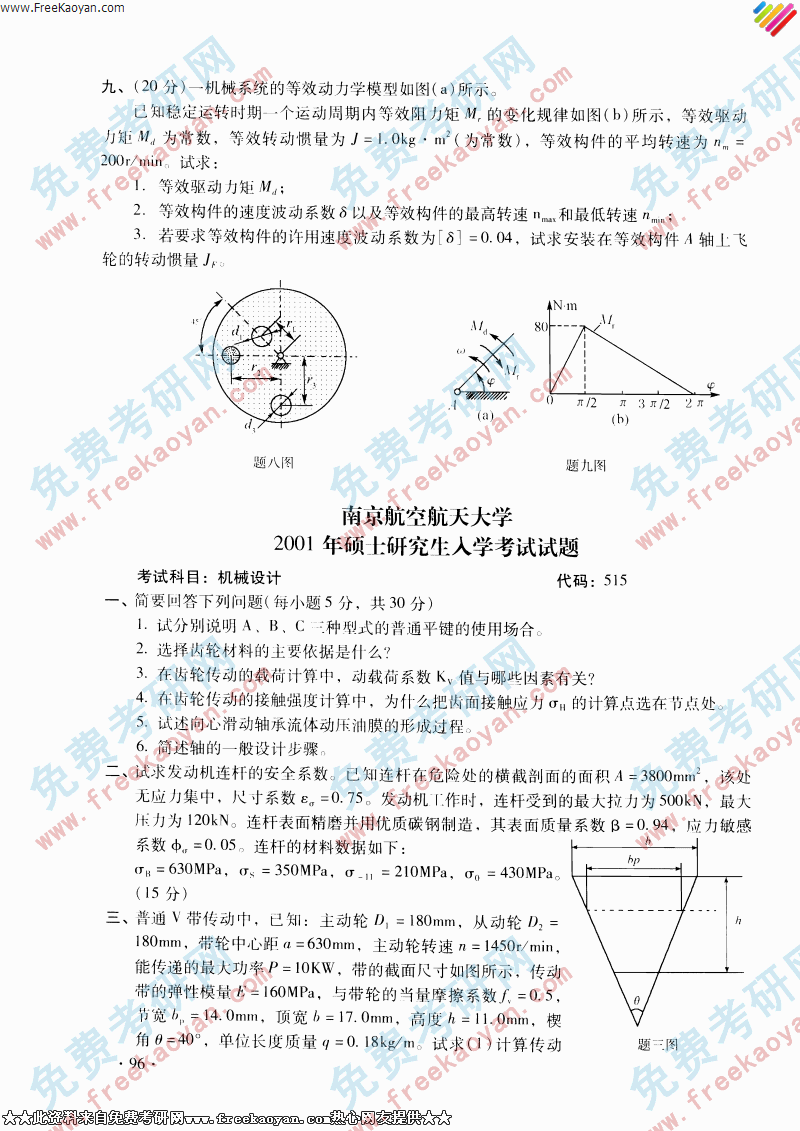 东南大学2001年机械原理专业课考研真题试卷