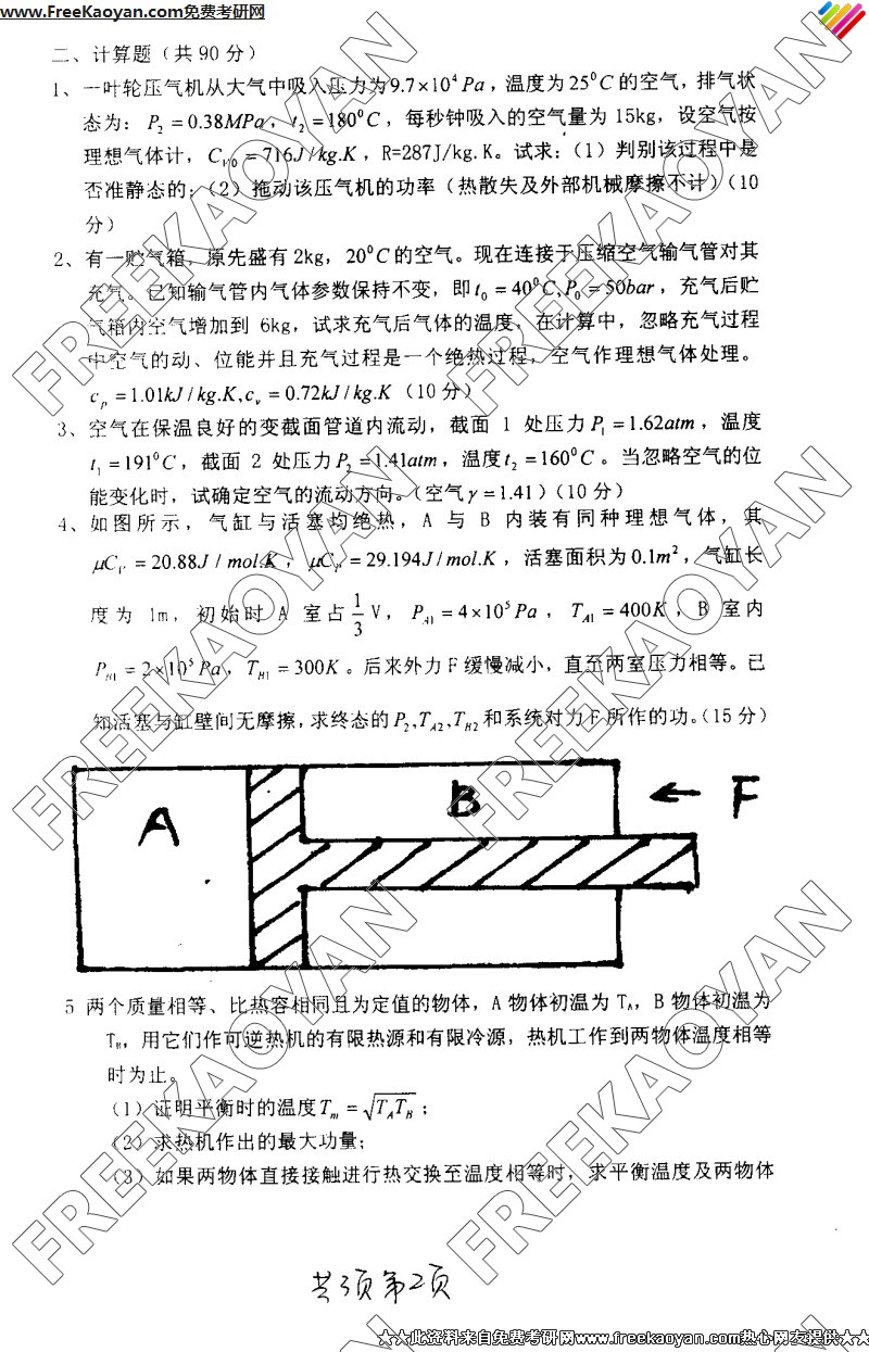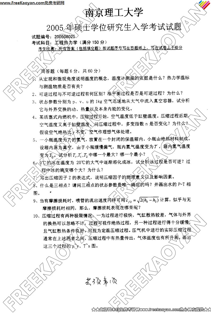 南京理工大学2005年工程热力学专业课考研真题试卷