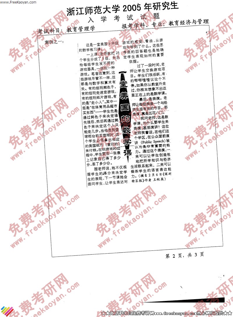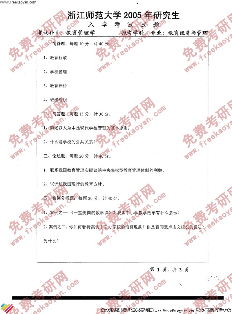 浙江师范大学2005年教育管理学专业课考研真题试卷