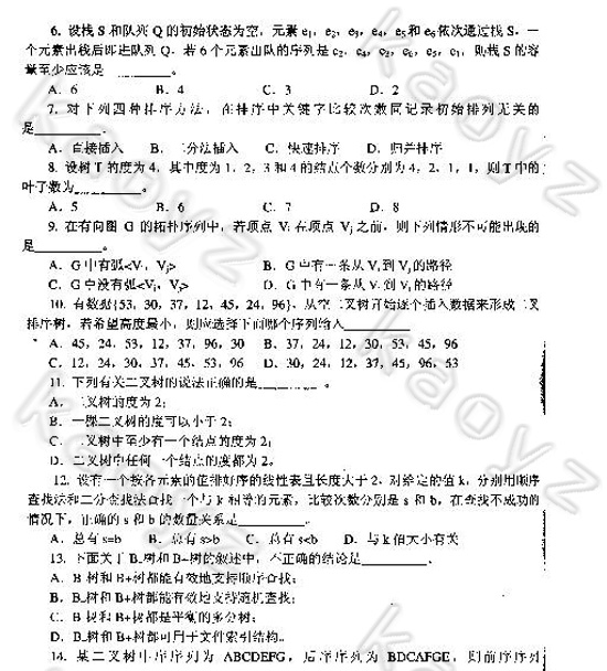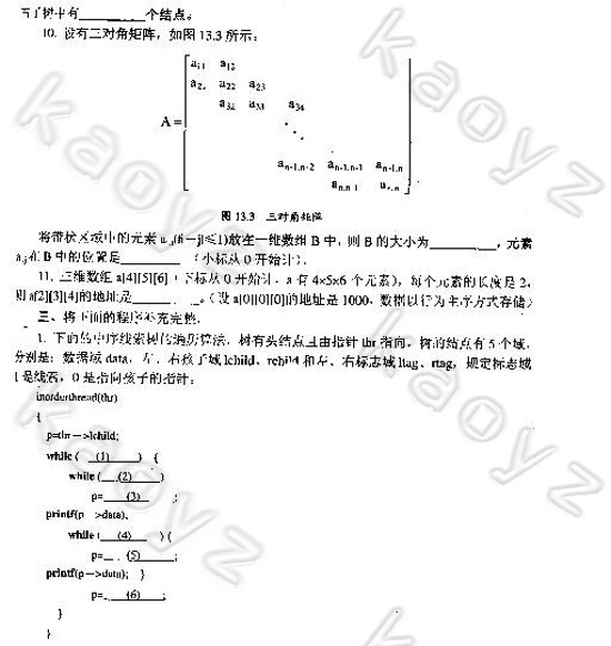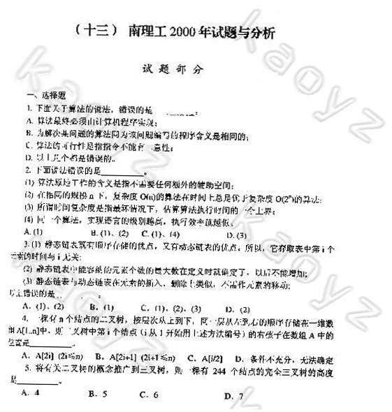 南京理工大学2000年数据结构试题与分析专业课考研真题试卷