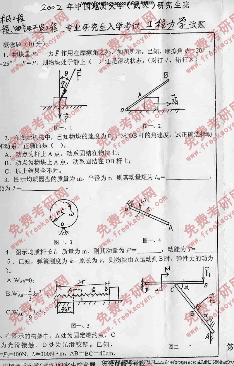中国地质大学(武汉)2002年工程力学专业课考研真题试卷