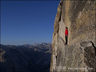 Honnold解释道:“我有一张站在1700英尺高的园半圆顶西北面的悬崖上的照片十分的出名。”