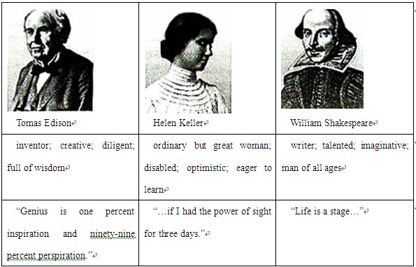 What impresses me most is his famous saying. “Genius is one percent inspiration and ninety-nine percent perspiration”. Probably I cannot be an Edison myself, but I can be a hardworking teamer. From him, I realize the secret to success is not when or where you were born. but what you are doing and how you do it in your life.