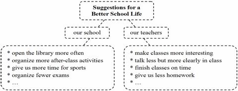 I’m very glad to write a letter to you. These days we are talking about how to have a better school life. Here are some of my suggestions. First, I hope our school will