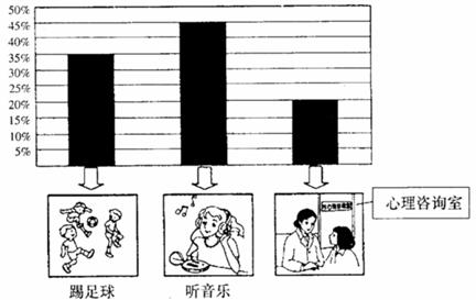 Nowadays more and more senior three students are getting stressed in their studies.In order to find out effective ways to release the stress,a survey was made last week infive schools.Altogether 500 students were interviewed,and some if interesting results were as follows:About thirty-five percent of the students let out their stress by doingsports.They play football,for instance.Meanwhile,another forty―five percent of them release their stress by listening to different kinds of music.Interestingly,the resttwenty percent of them usually get help from the school psychological consulting office.